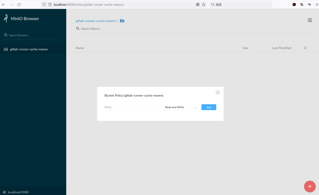 创建一个 Bucket,命名为 gitlab-runner-cache-maven 用于存放编译项目的依赖文件。