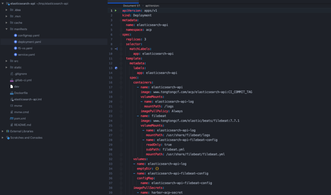 deploy 阶段用于在 Kubernetes 环境中部署的资源文件在 manifests 目录中,根据你自身项目的情况来编写。