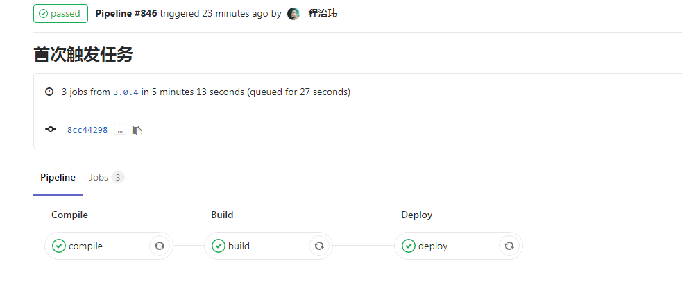 至此就完成了这一整套 Gitlab CI/CD 流程:
