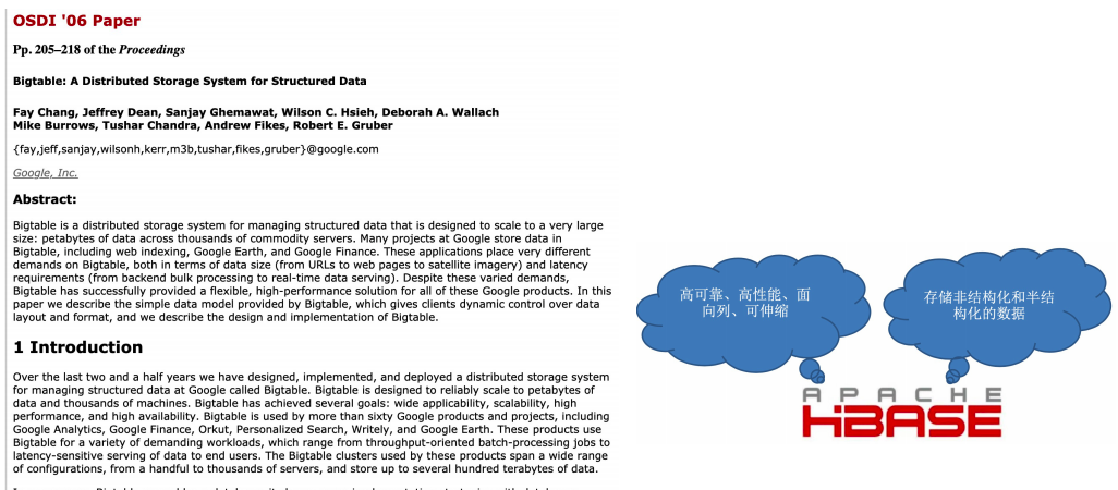 HBase 的全称是 Hadoop Database,是一个分布式的,可扩展,面向列簇的数据库。HDFS 为 Hbase 提供了可靠的底层数据存储服务,Zookeeper 为 Hbase 元数据管理和协调服务,Hbase 是一个通过大量廉价的机器解决海量数据的高速存储和读取的分布式数据库解决方案。HBase 的原型是谷歌的分布式存储系统 BigTable,是谷歌 BigTable 的开源实现。