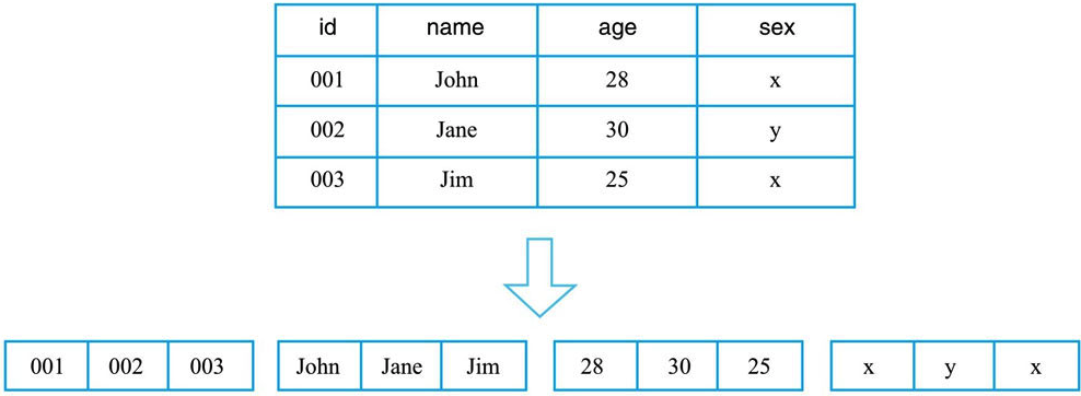 列式存储:列式存储理论上会将一列数据存储在一起,不同列的数据分别集中存储,最典型的如Kudu、Parquet on HDFS 等系统。