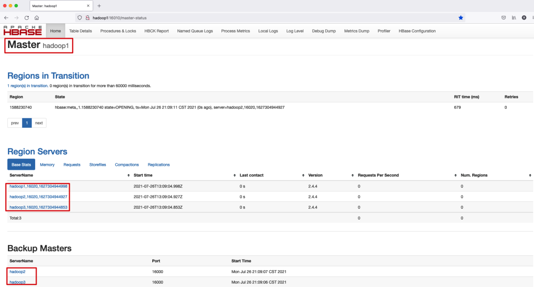| hadoop3 | 192.168.1.117 | Backup Master,RegionServer |