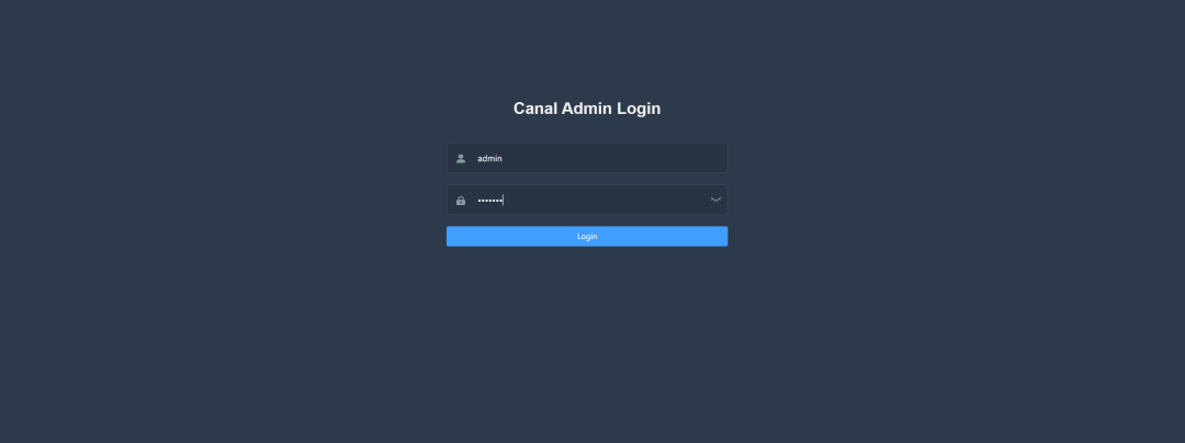 浏览器输入 http://11.8.36.104:8089 访问 Canal Admin 管理界面,默认用户名 admin,密码 123456。