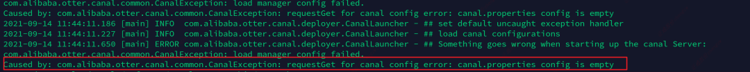 注意载入集群配置必须在 Canal Server 添加进集群之前做,否则 Canal Server 会无法加入集群,有以下报错: