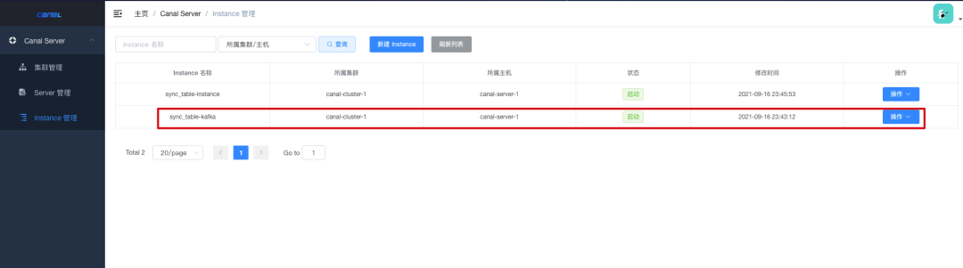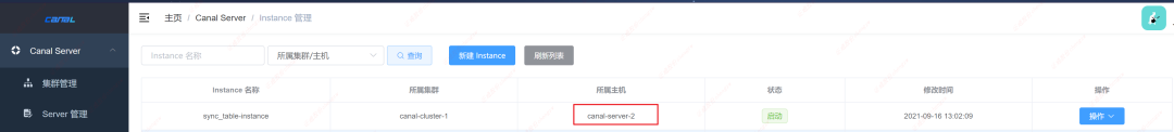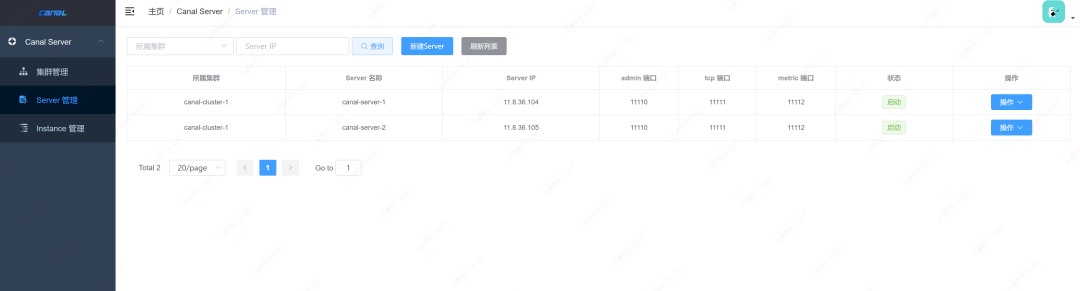 当然在 Canal Admin 界面也可以看到当前处于 running 状态的 Canal Server。