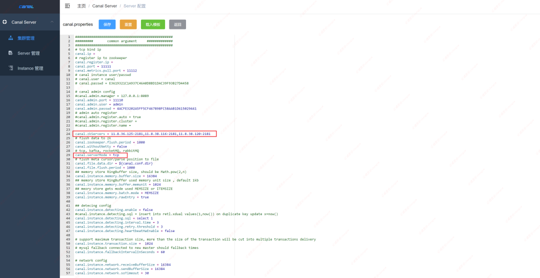 另一台 Canal Server 也是一样的方式配置,修改 canal.register.ip = 11.8.36.105