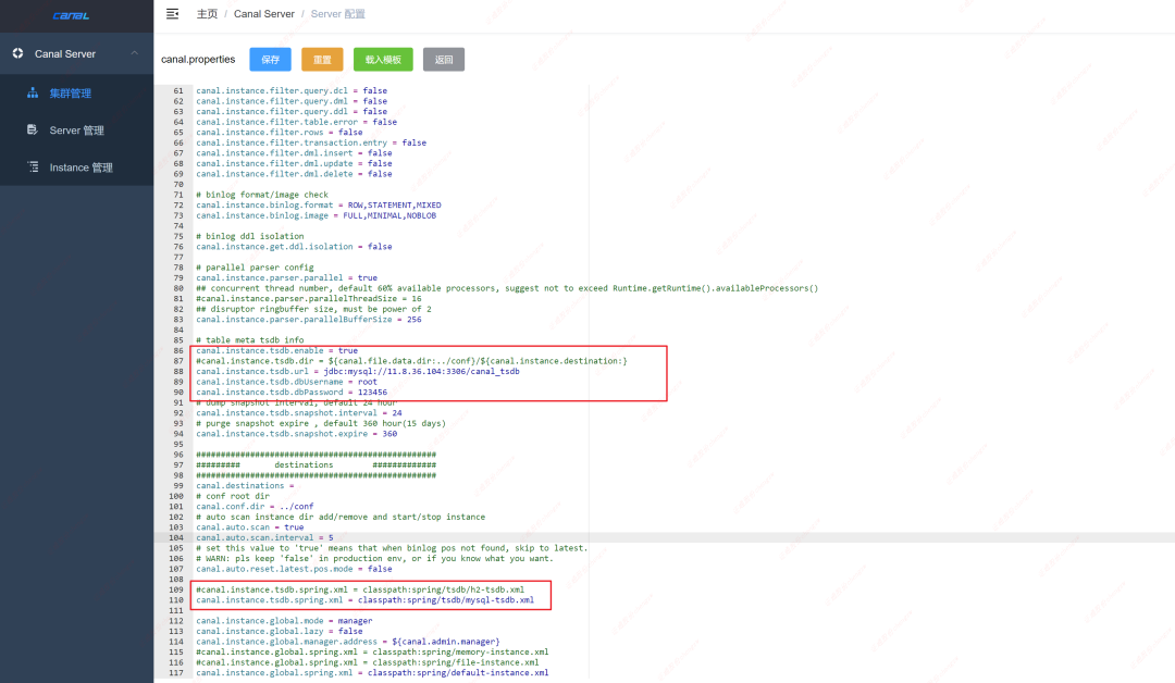 修改配置文件 vim software/canal-admin/conf/application.yml:
