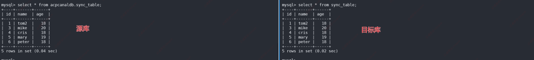 # 例如数据库名为 acpcanaldb,表名为 table1,则 topic 名字为 acpcanaldb_table1