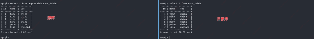# 这里的动态匹配有个 bug,如果源库是的表中有下划线,例如前面的 sync_table,将无法同步成功