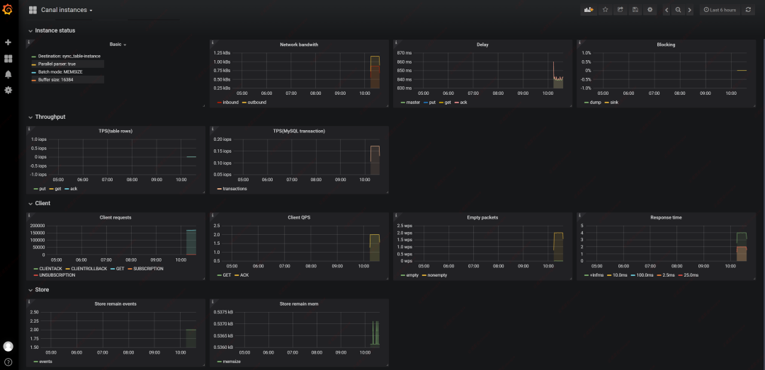 Canal Server 性能指标监控基于 Prometheus 的实现,可以把监控的指标信息收集到 Prometheus 中,然后通过 Grafana 展示。