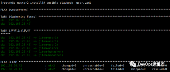 [root@k8s-master2 install]# ansible-playbook user.yaml