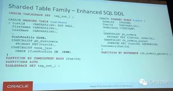 在2015年OOW大会,国内很多小伙伴们一直非常关心Oracle Database 12.2中的Sharding技术实现,可是要知道在Larry Ellison的演讲中,根本就没有提到这个特性,而在Andrew Mendelsohn的Session中,这一特性也仅仅只有一行字:Sharding 。