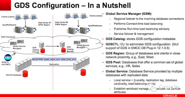 可能很少有人注意到,在Oracle 12.1版本中增加的一个新的产品组件 GDS - Global Data Services,通过GDS可以构建一个访问“连接池”,为后端的数据库访问提供代理和路由服务,前面提到的Shard Directories,正是在GDS中配置的。
