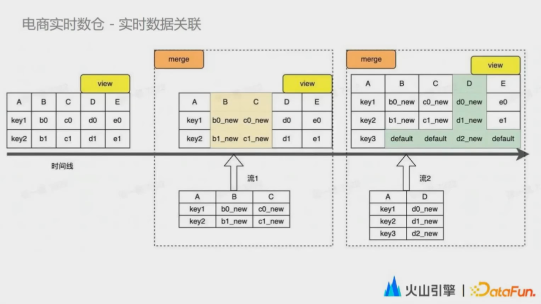 第二是列级并发。比如接下来在实践实际案例中,我们要介绍的这个实时数据关联场景,每个writer实际上只是根据主键去更新部分的列。因此这些数据其实在行级别看起来是冲突的,但是从列的角度来看是完全不冲突的。配合我们的一些确定性索引,数据能被写入到同一个文件组中,这样就不会出现一致性的问题。