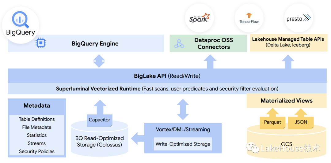 在进行本论文剖析之前,我们先看下Google在Google Data Cloud Summit 2022介绍的BigLake的架构: