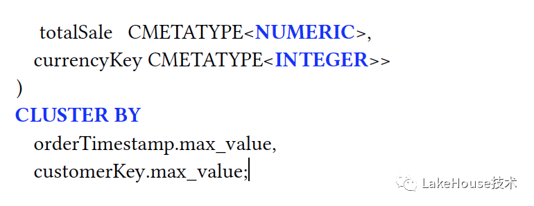 data skip表支持按照分区键的最大值进行clustering,同时最新版本的数据通过物化视图来处理。data skip表的元数据为了提高查询效率,直接存储在逻辑元数据的中心元数据,相当于能够提高查询效率。