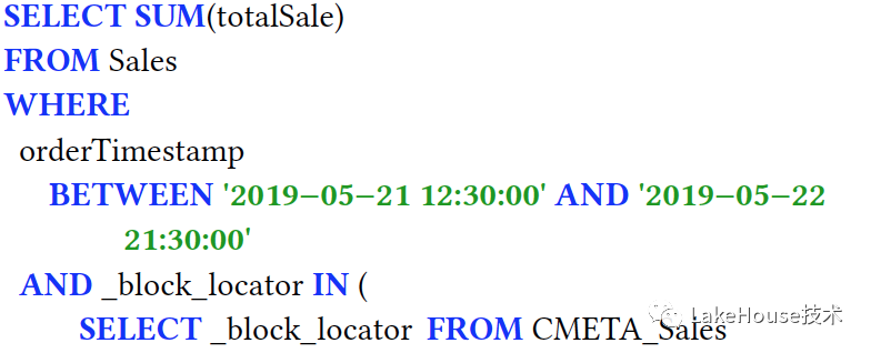 data skip表的查询和数据的查询进行统一查询优化,也就是说对data skip表的访问的会作为一个子查询生成到统一的用户的SQL的查询优化中。用户的SQL: