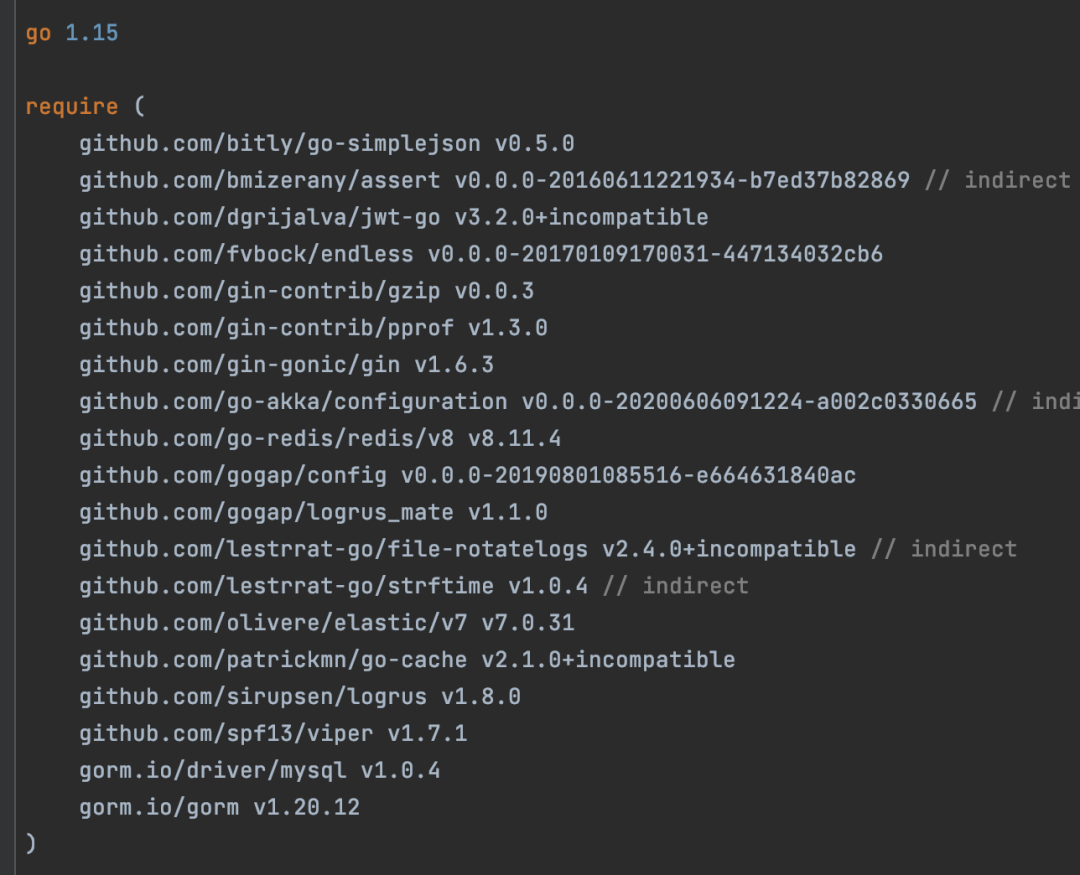 解析相应语言的配置文件,以Go为例,通过解析go.mod和go.sum文件,获取相关依赖信息。