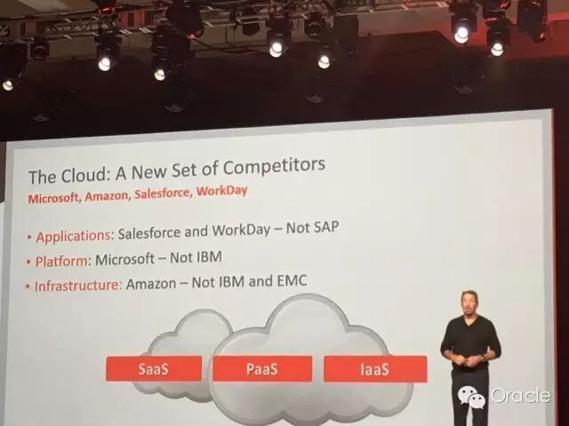 那么Ellison眼里的竞争对手是谁呢?SaaS领域的Salesforce,WorkDay;PaaS领域的微软和IaaS领域的Amazon。