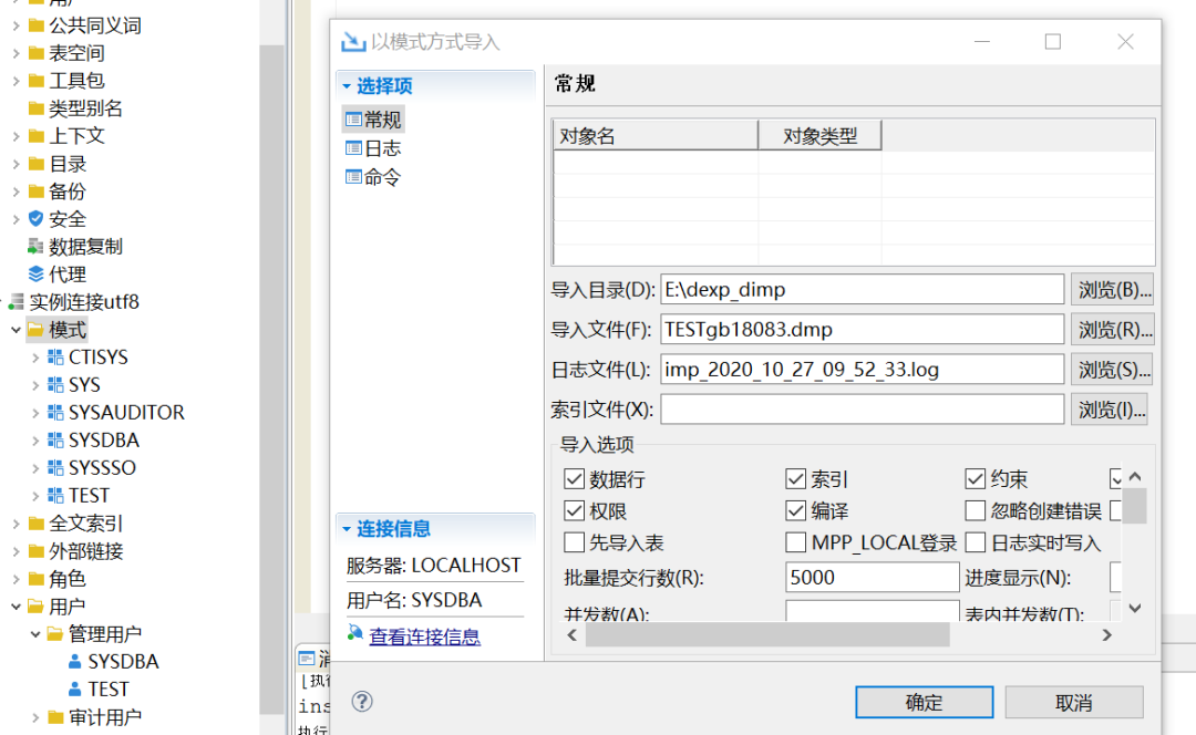 实例2上创建用户TEST导入