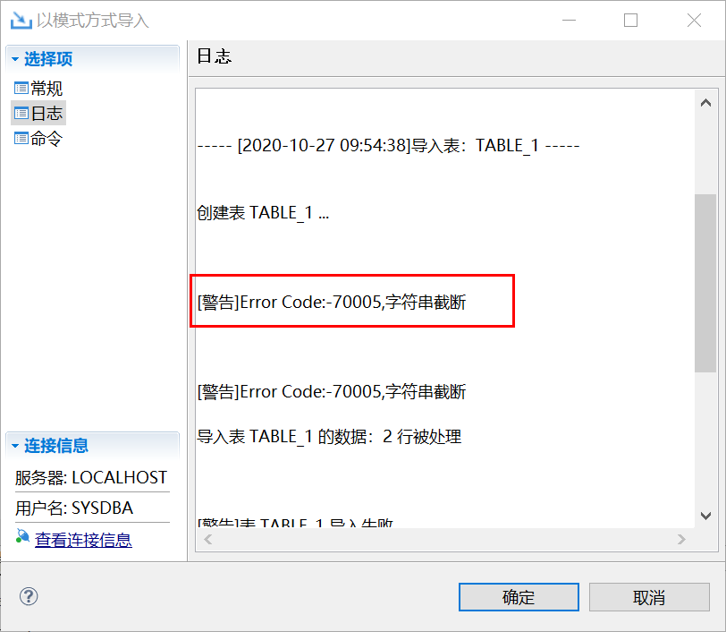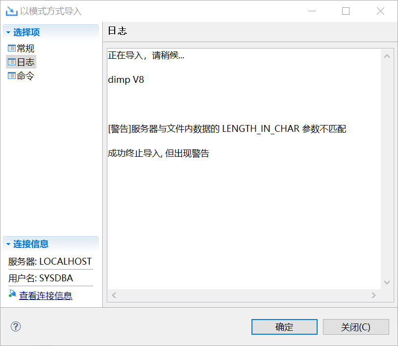 虽然日志最下方没有警告,但日志最上方还是有个导入导出字符集不一致警告。