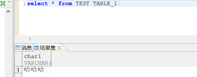 insert into TEST.TABLE_1 values('哈哈哈哈哈');commit;