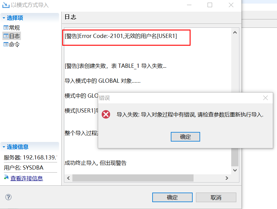 若4中没有USER1用户,直接导入会报没有这个用户名错误。