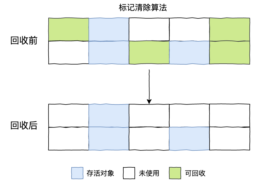 在对象变多的情况下,标记和清除效率都不高 会产生空间碎片
