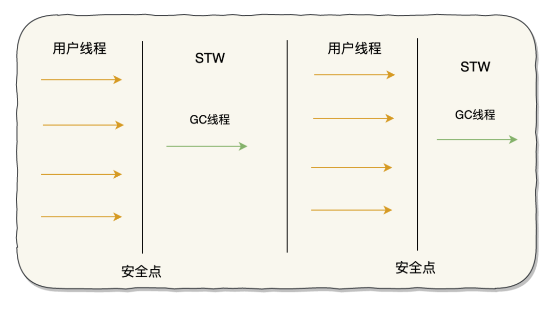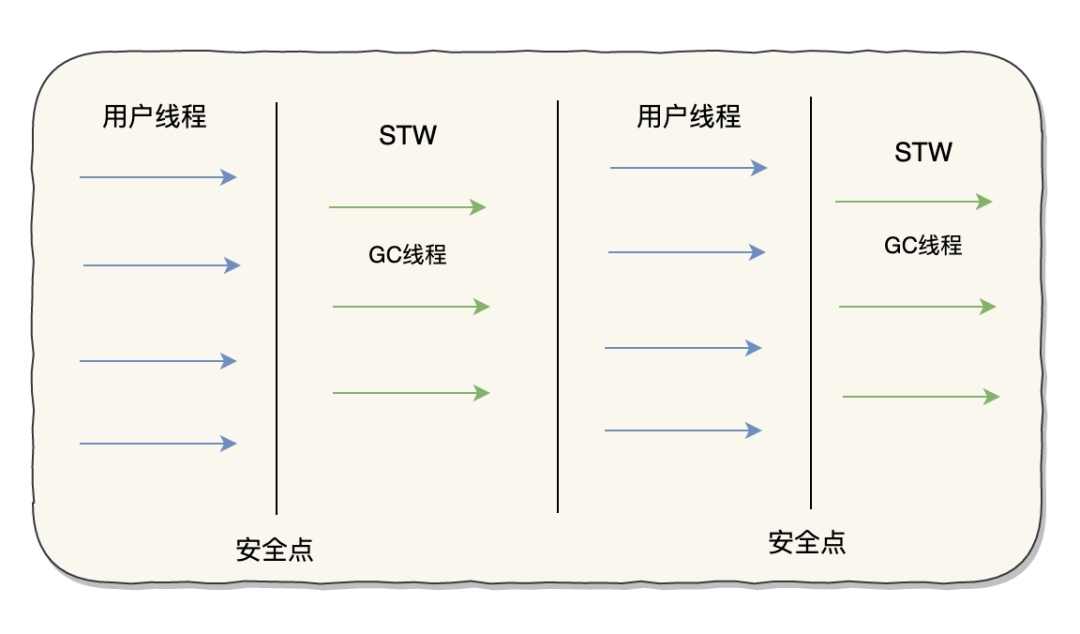 如果有需要,可以在这个位置暂停,比如发生 GC 时,需要暂停所有活动线程,但是线程在这个时刻,还没有执行到一个安全点,所以该线程应该继续执行,到达下一个安全点的时候暂停,等待 GC 结束。