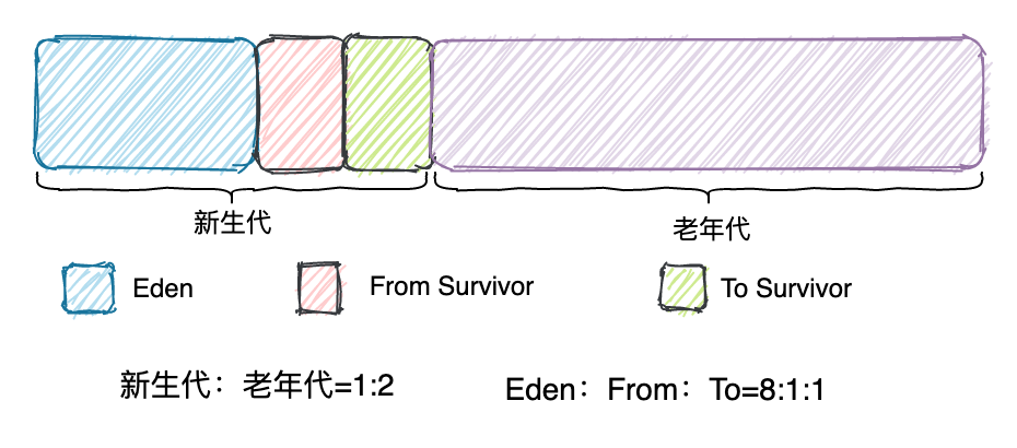 之所以叫分代,是因为根据对象存活周期的不同将整个 Java 堆切割成为三个部分: