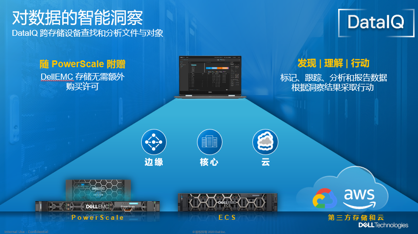 在提供智能的洞察力方面,PowerScale通过新增的CloudIQ和DataIQ获得关于存储基础架构和非结构化数据的洞察力。