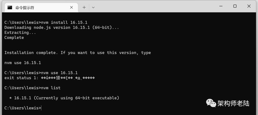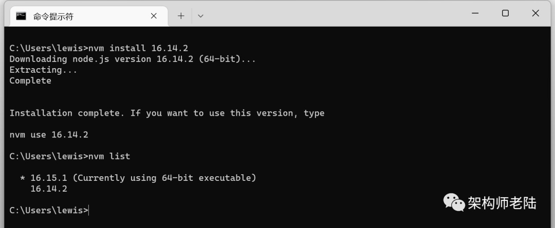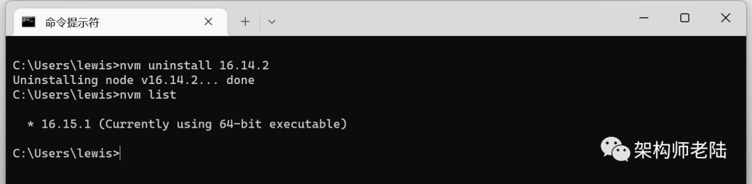 # 查看可用 Node.jsnvm list availablenvm ls available# 查看已安装 Node.jsnvm listnvm ls# 安装 Node.jsnvm install 版本号# 切换 Node.js(管理员身份运行)nvm use 版本号# 卸载 Node.jsnvm uninstall 版本号# 查看 nvm 版本号nvm versionnvm v