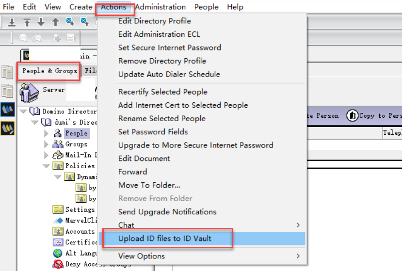 这时候我们可以考虑手动上传用户的ID文件到ID保险库,不过这个功能有点特殊,因为必须要Domino V12版本才能实现。因此我们告诉一下大家方法进行参考: