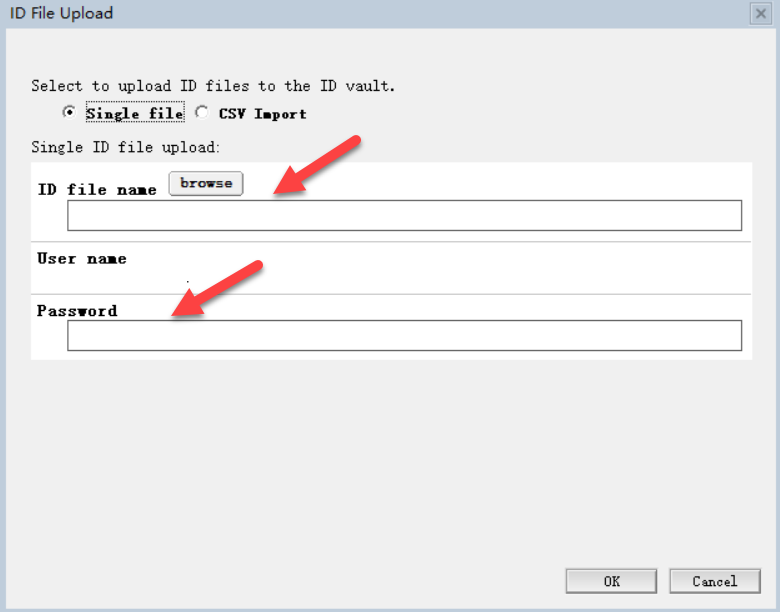 在出现的对话框中依次选择用户的ID文件,输入密码,如下图: