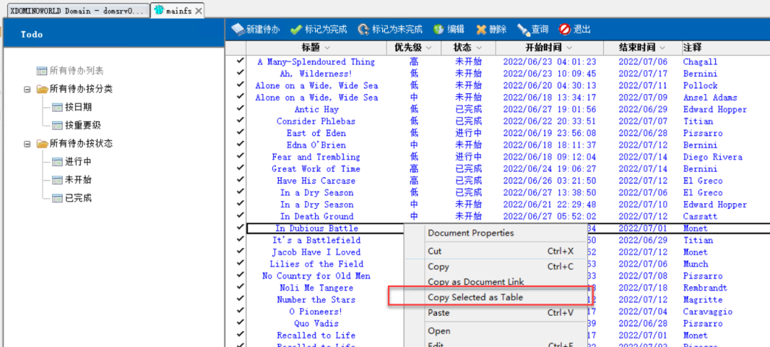 为此,我想说Domino应用内的数据导出到Excel中真的很容易,人人都会,比如全选或选择你部分的Notes文档数据,鼠标右键,选择“拷贝所选内容为表格”,如下图: