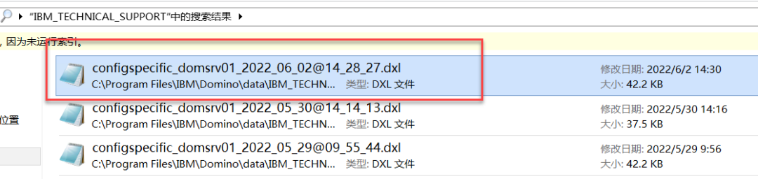 例如服务器文档或配置文档的修改,每修改一个地方,Domino都将修改之前的服务器文档或配置文档捕获出来,变成一个dxl文件,位置位于Domino的数据目录data下的IBM_TECHNICAL_SUPPORT文件夹中,如下图: