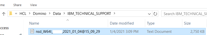 就在同一个文件路径下,即Domino数据目录data下的IBM_TECHNICAL_SUPPORT文件夹中,你可以会发现很多nsd命名开头的文件,例如下图: