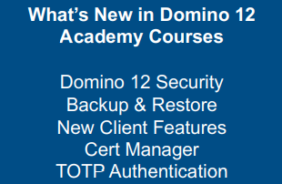 管理课程中的重点应该是Domino V12版本中的新特性,例如安全、备份和还原、Notes客户机新特性、证书管理以及TOTP验证,如下图: