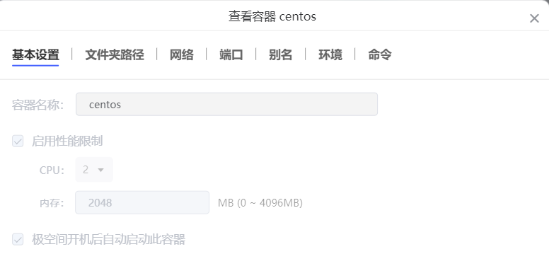 在出现的Docker容器设置中分配了一下CPU和内存:
