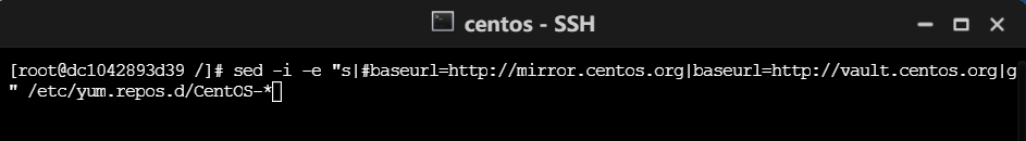 sed -i -e "s|#baseurl=http://mirror.centos.org|baseurl=http://vault.centos.org|g" etc/yum.repos.d/CentOS-*
