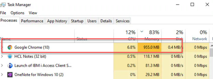 如果你发现一个现象,即Chrome占比很大,而且整个内存被使用了80%以上,这就意味着危险的临近。
