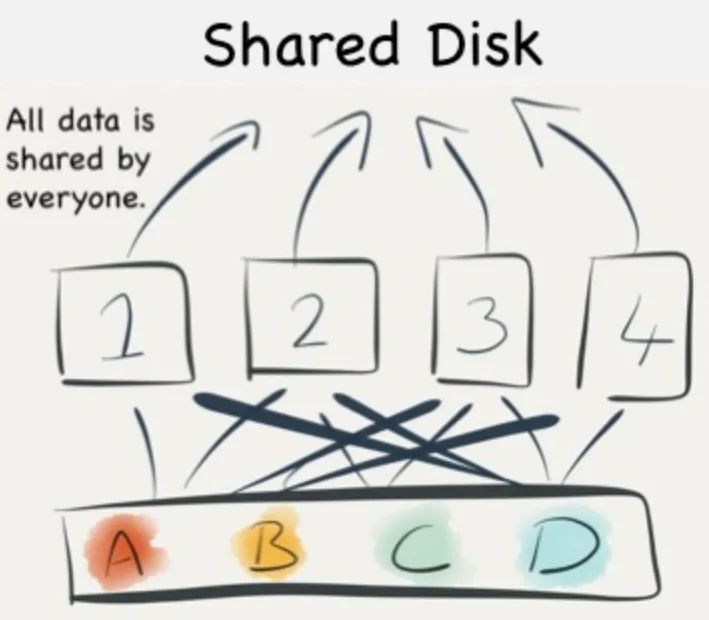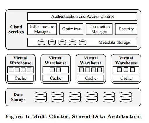 拿 snowflake 论文的架构图一看,就明白:原本的单体数据库,哪怕是集群数据库,走的通常是 shared-disk 架构: