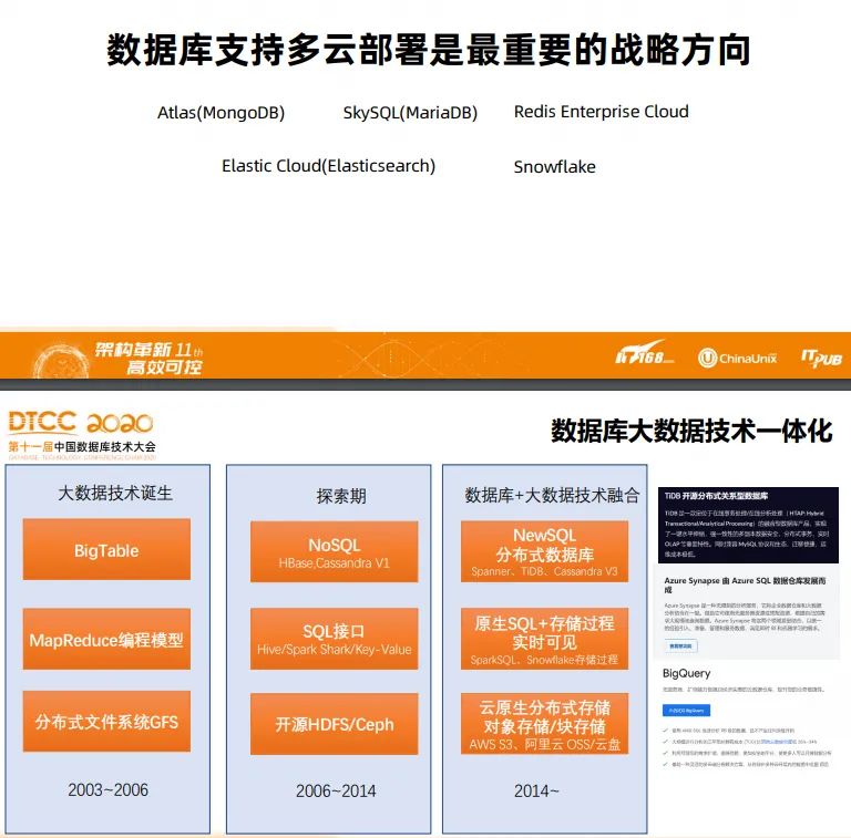 看到这幅图,如果你胆子大点,肯定会预判单体的数据库平台,将来一定会受到云数据库的冲击。在2C领域,传统的关系型数据库一定没有空间,一是缺少对非结构化数据的支持,二是扩展受限。