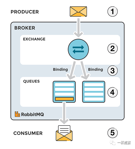 生产者向交交换器发布消息。创建交换时,必须指定类型(下个问题将揭晓多种类型) 交换机收到消息,现在负责路由消息。交换机会根据交换类型考虑不同的消息属性,例如路由密钥 绑定必须从交换机创建到队列。上图中,有两个绑定到来自交换机的不同两个队列。交换机根据消息属性将消息路由到队列中 消息保留在队列中,直到被消费者处理 消费者处理消息