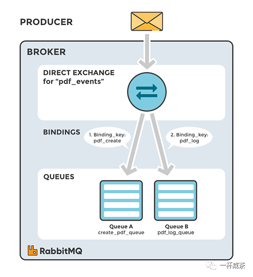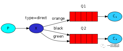 Direct(直接交换机):消息被路由到绑定键与消息的路由键完全匹配的队列。例如,如果队列使用绑定键pdfprocess绑定到交换器,则使用路由键pdfprocess发布到交换器的消息将被路由到该队列