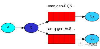 | Publish/Suscribe(发布订阅模式) | fanout(扇形交换机) |