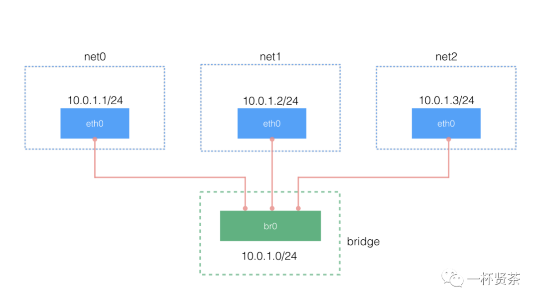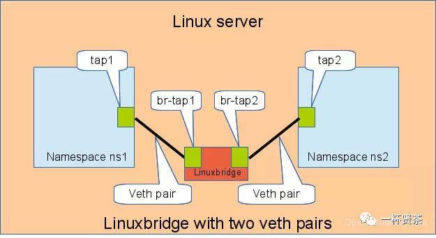 Linux Bridge相当于一台交换机,可以中转两个namespace的流量,我们看看veth-pair在其中扮演的什么角色