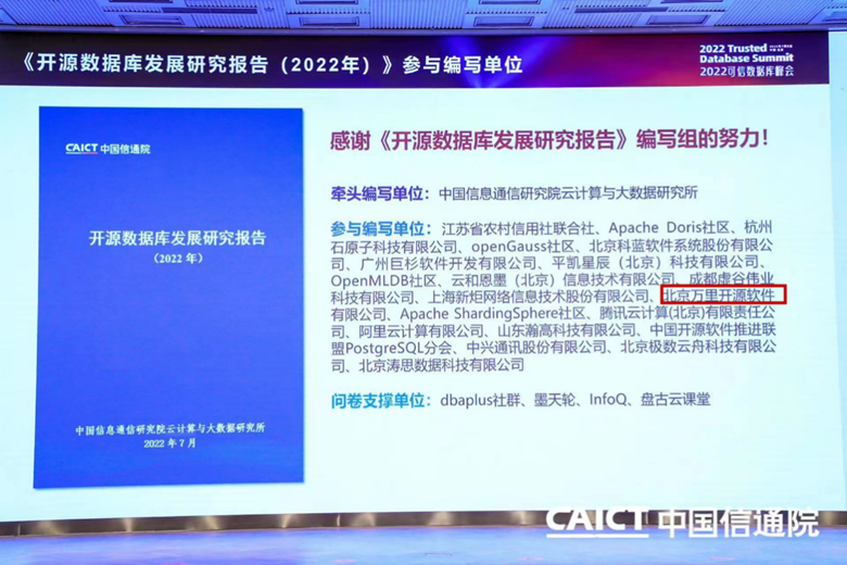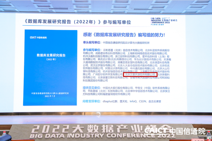 万里数据库作为国产数据库的重要成员,特派高孝鑫、李杨桅、齐益琛三位资深技术专家全程参与报告编写工作,为数据库产业研究献言献策,尽献一臂之力。