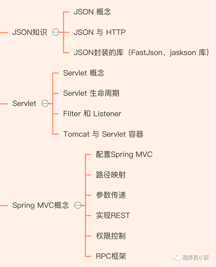 Maven:Maven与包管理、POM文件、生命周期等 单元测试:单元测试的概念,Junit Spring Core:依赖注入与控制反转、Spring概述、xml 装配 bean、Spring容器与生命周期、自动装配、注解装配、切面编程(AOP) HTTP协议:基本概念、方法(GET/POST)、HttpClist 库 JSON知识:JSON 概念、JSON 与 HTTP、JSON封装的库(FastJson、jaskson 库) Servlet概念:Servlet 概念、Servlet 生命周期、Filter 和 Listener、Tomcat 与 Servlet 容器 Spring MVC概念:配置Spring MVC、路径映射、参数传递、实现REST、权限控制等