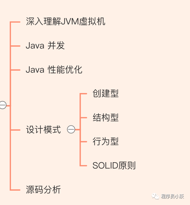 深入理解JVM虚拟机 Java 并发 Java 性能优化 设计模式:创建型(工厂、抽象工厂、生成器、原型、单例),结构型(适配器、桥接、组合、装饰器、外观、享元、代理),行为型(责任链、命令、解释器、迭代器、中介、备忘录、观察者、状态、策略、模板方法、访问者) 设计原则:SOLID 源码分析